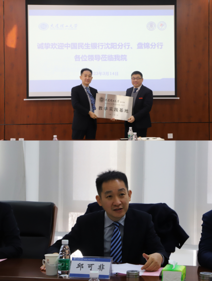 3月14日上午,体育买球官方网站、知识产权学院与中国民生银行盘锦分行共建教学实践基地授牌仪式在盘锦校区顺利举行,中国民生银行沈阳分行行长助理张大治、沈阳分行人力资源部总经理徐家波、盘锦分行行长邱可非,校长助理兼盘锦校区党工委书记、管委会主任占敬敬,党工委副书记、管委会副主任曲长生,管委会副主任孙刘劼,教学事务办公室主任王春鹏,以及体育买球官方网站、知识产权学院、莱斯特国际学院有关领导出席仪式。